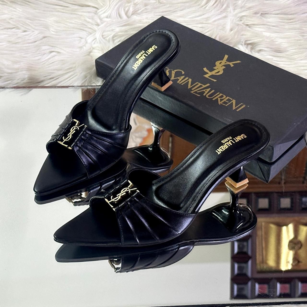 Elevate your style with YSL Heels, expertly designed to combine elegance and comfort. Crafted with premium materials and a sleek silhouette, these heels provide impeccable support while enhancing your outfit with timeless sophistication. Perfect for formal occasions or adding a refined touch to everyday wear, YSL Heels embody luxury and meticulous craftsmanship.